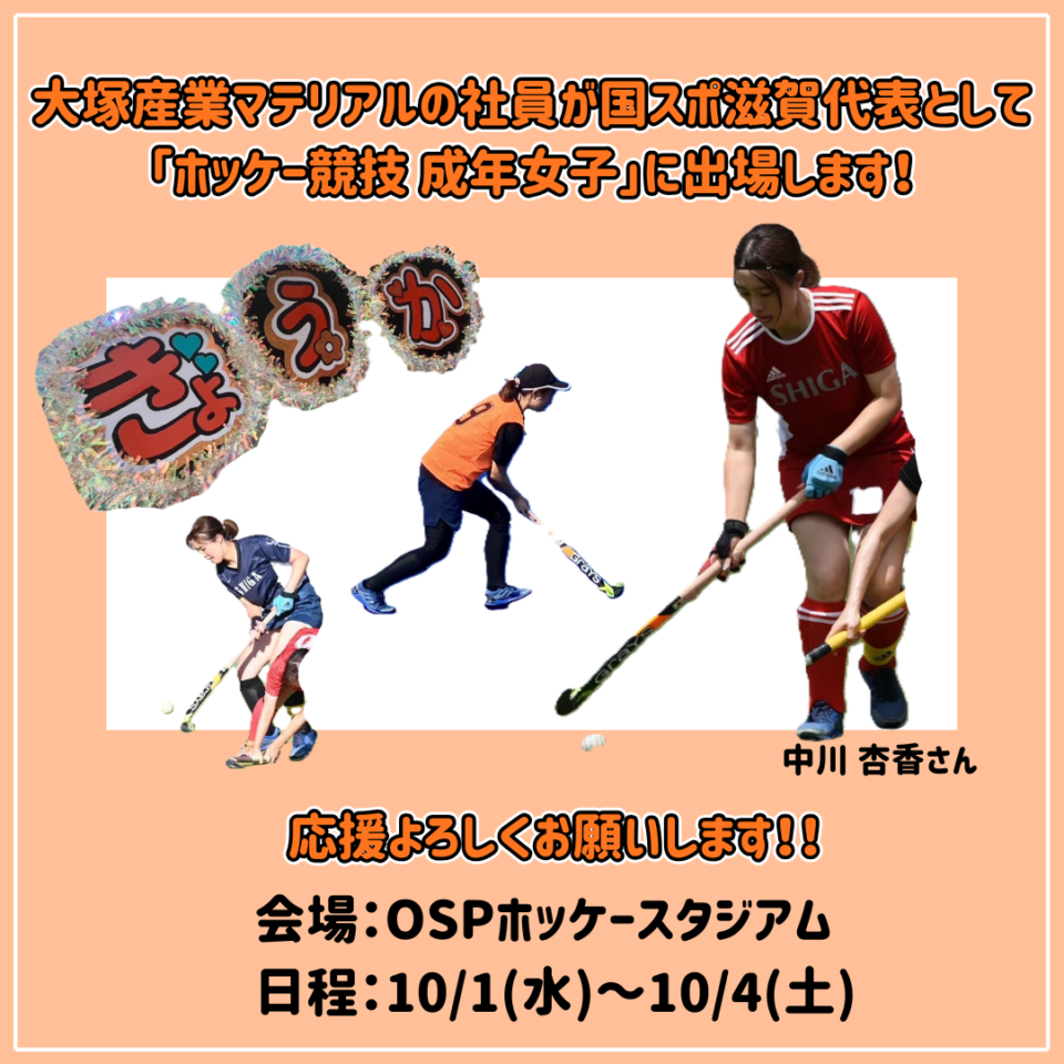 社員が国スポ滋賀代表として「ホッケー競技 成年女子」に出場します。